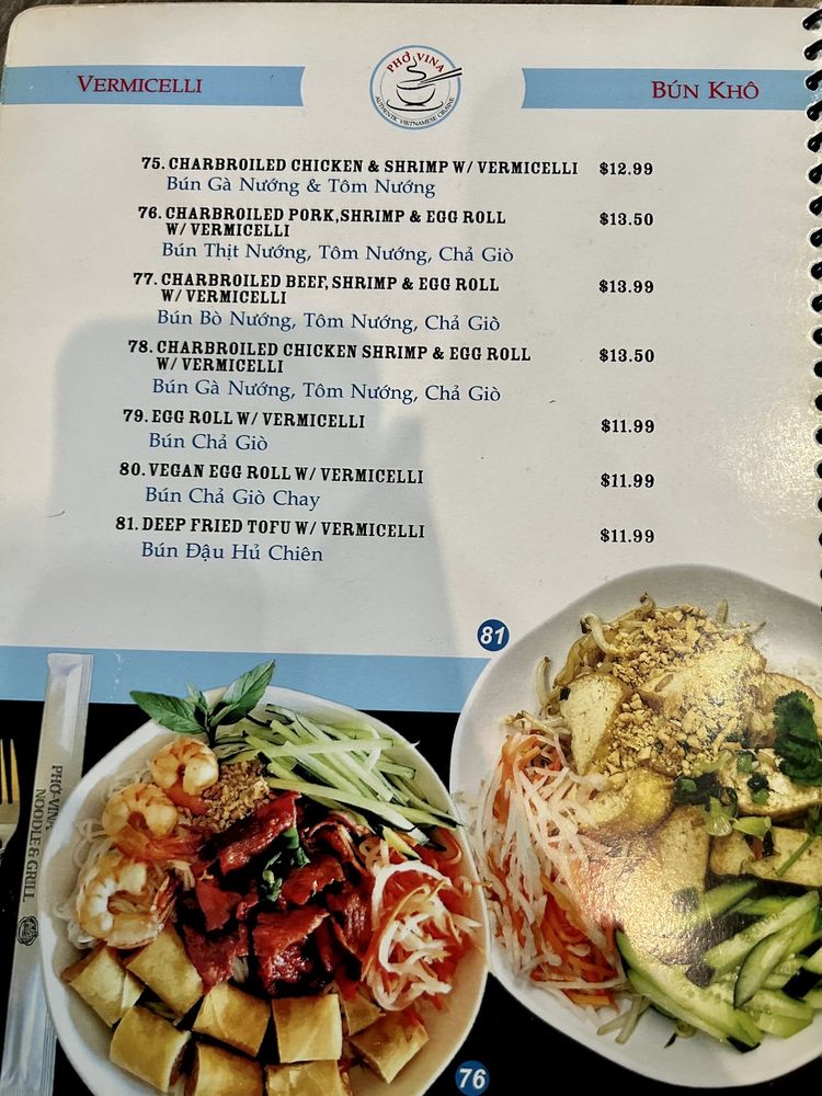 Pho Vina, a Vietnamese restaurant located in Pomona, CA, is praised by customers for its delicious food, fast service, and peaceful environment. With options for takeout, delivery, and reservations, Pho Vina caters to a variety of dining preferences. The menu boasts vegan and vegetarian options, along with delectable dishes like pho, vermicelli bowls, beef Bahn Mi sandwiches, and tasty egg rolls. Reviewers appreciate the quiet ambiance, making it a great spot for those who prefer a more relaxed dining experience. The restaurant's commitment to sustainability is evident through its use of compostable containers and reusable tableware. With affordable prices and a convenient location in the art district of Downtown Pomona, Pho Vina stands out as a top choice for flavorful Vietnamese cuisine.
